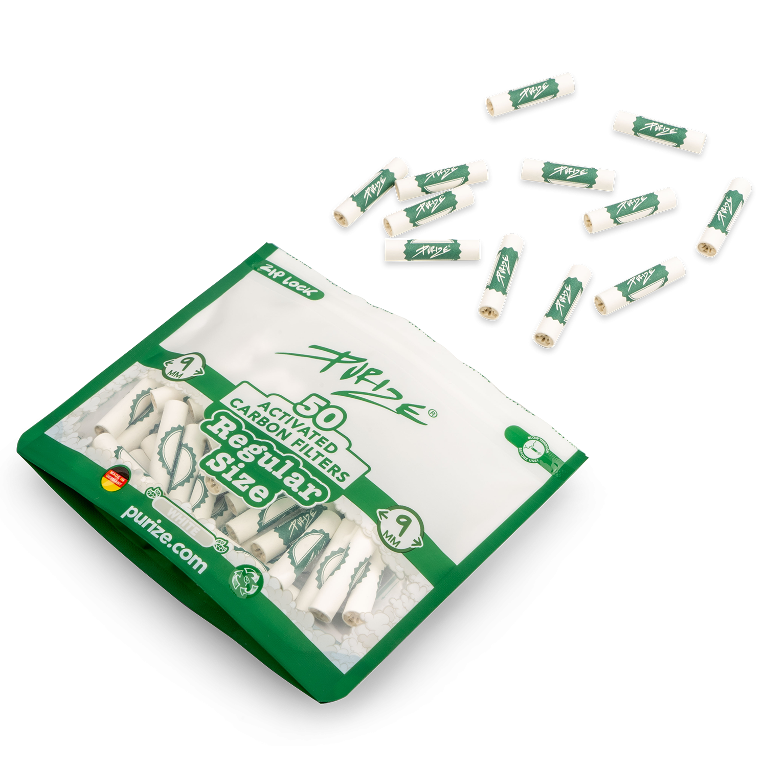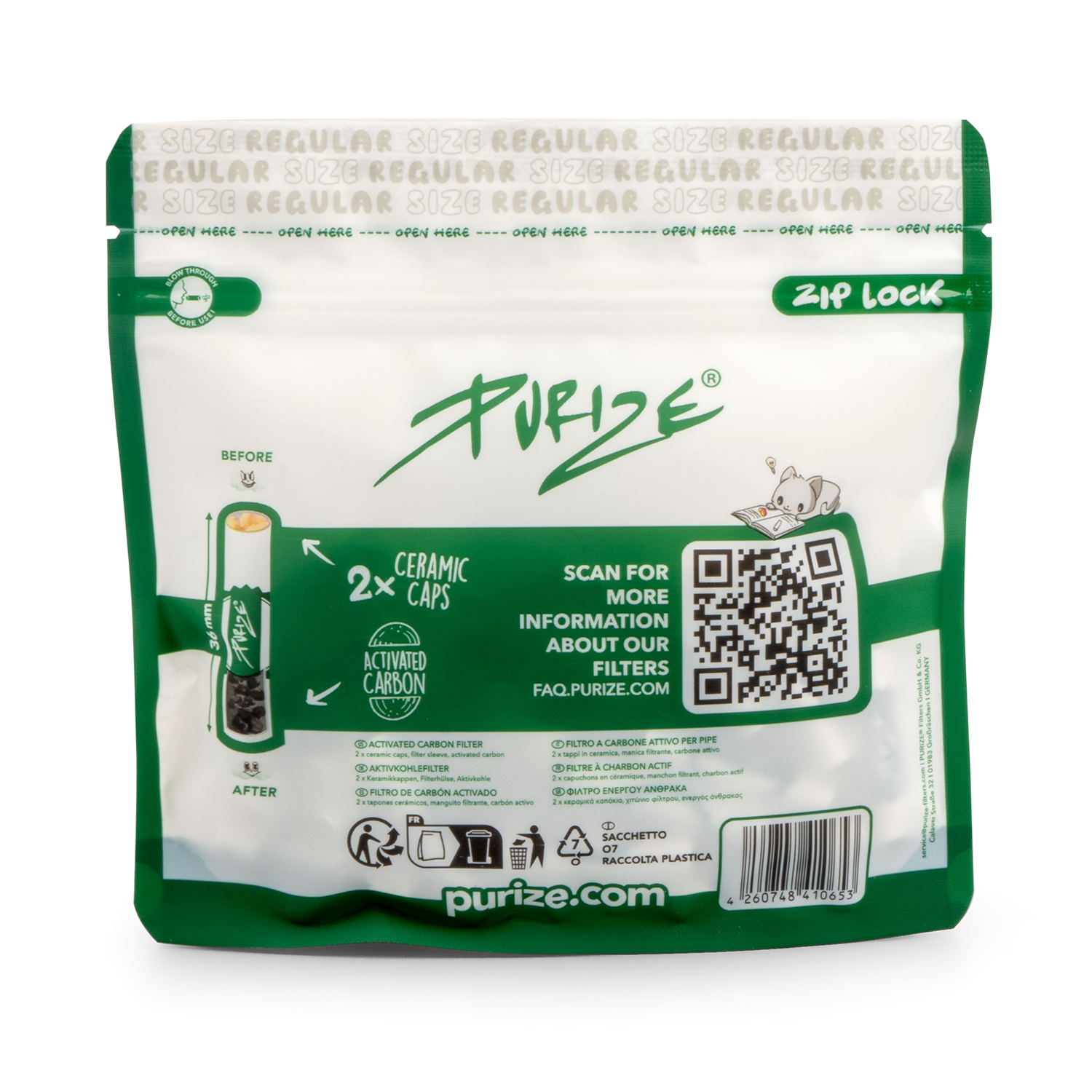Die Purize Aktivkohlefilter mit Aktivkohle auf Kokosnuss-Basis sorgen in der Regular Size Größe für besten Durchzug. Im wiederverschließbaren Vorratsbeutel können die Aktivkohlefilter luft- und wasserdicht transportiert werden. Die hochwertige Aktivkohle reduziert die Schadstoffaufnahme und sorgt für ein angenehmes Raucherlebnis. Beide Endkappen der Filter sind mit Keramikkappen versehen, somit gibt es keine Einsteck- und Eindrehrichtung.